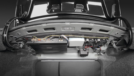 Связка усилителя с ЦАП и кроссоверы устанавливаются на фанерном основании, которое закреплено под задней полкой. Седаны в таком отношении крайне удобны, а такие, у которых можно откинуть спинку заднего сиденья — еще более удобны, во всех отношениях. Ни пяди полезной площади багажника не пропало, а приборы не требуют дополнительной защиты (если будуете загружать в багажник диван «в пряжке» — надо говорить об этом до начала установки). Проводку и кроссоверы установили на основании заблаговременно, а усилитель-ЦАП монтировали уже после того, как было установлено основание в багажнике с помощью предварительно укреплённых болтов. На рабочих снимках виден опыт предварительной сборки.
